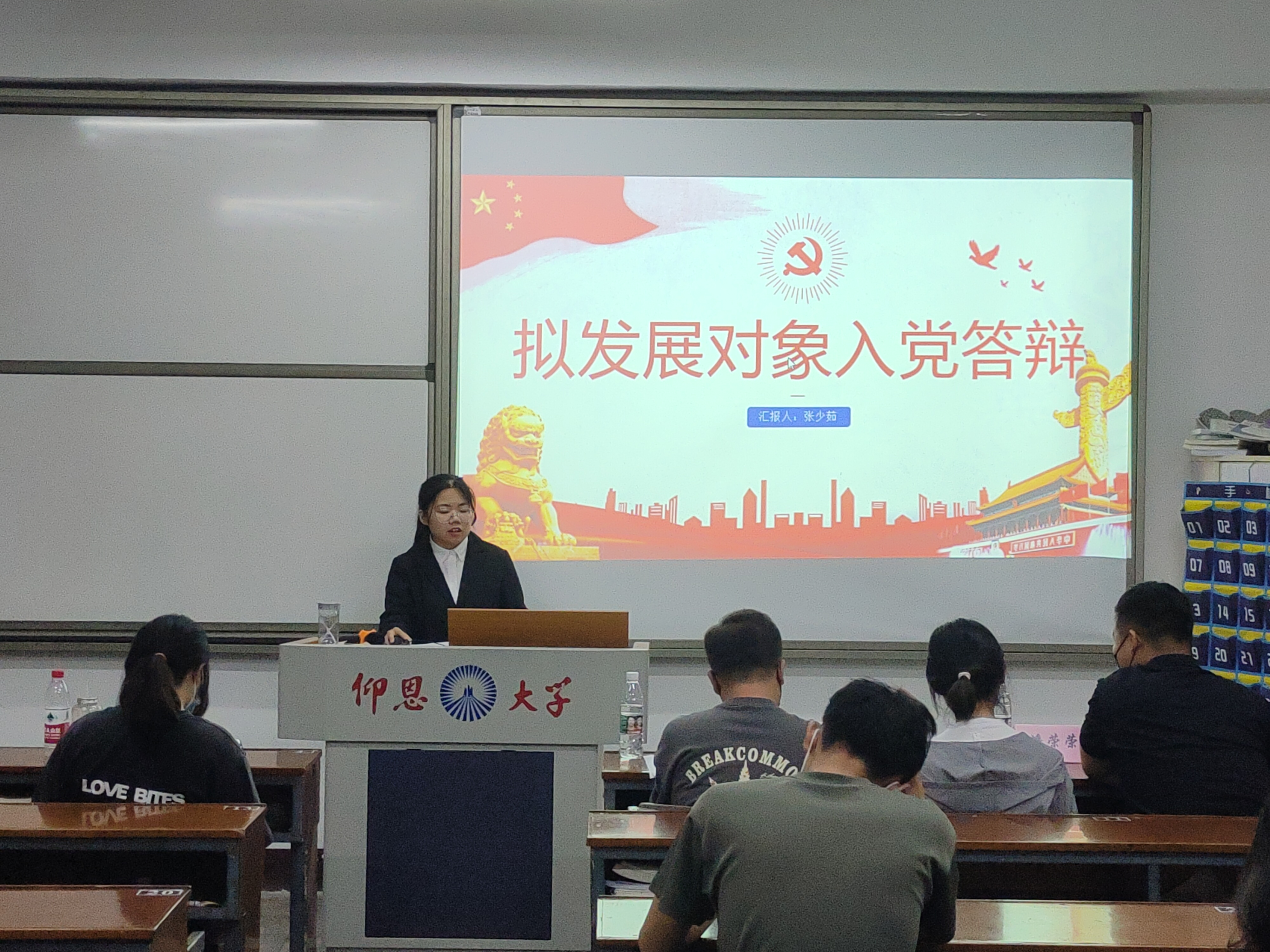 为严把党员“入口关”,全方位考察发展对象的综合素质,增强吸纳党员工作的透明度。2022年5月4日晚,公司党总支于共和楼312、206召开第七期拟发展对象入党答辩会。本次答辩会旨在吸纳优秀员工壮大党员队伍,为支部的战斗堡垒作用打下坚实的基础。公司党总支书记曾凤生老师,副书记吕思仁老师,计算机系员工第一党支部书记潘荣荣老师等参加了本次会议并担任答辩评审团。